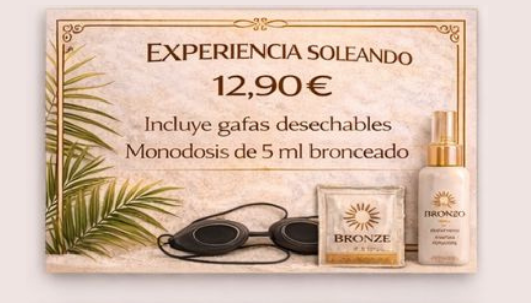 La Experiencia Soleando es nuestra forma de darte la bienvenida: una sesión completa, sencilla y sin complicaciones, con todo lo necesario incluido desde el primer minuto.